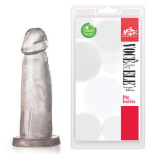 Prótese em formato de pênis com 14,5 cm de comprimento e 4 cm de diâmetro para rasa e instigante penetração vaginal ou anal, em PVC atóxico de fácil higienização.
