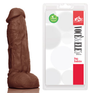 Prótese em formato de pênis com 14,5 cm de comprimento e 4 cm de diâmetro para penetração vaginal ou anal. Em PVC atóxico translúcido (gel) aromatizado de fácil higienização.