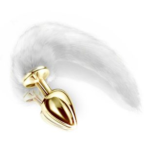Plug em metal com rabo branco com varias cores para o plug foi desenvolvido para ajudar na dilatação anal dos praticantes deste tipo de sexo. Este modelo tem o diferencial de fetiche de ter um rabo branco. Quando o Plug está inserido no ânus, o parceiro ou a parceira estará com um rabo aparente.