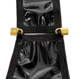 Tanga confeccionada em Vinil super flexível, com abertura na parte de baixo para penetração e com cadeados de plásticos como enfeite.